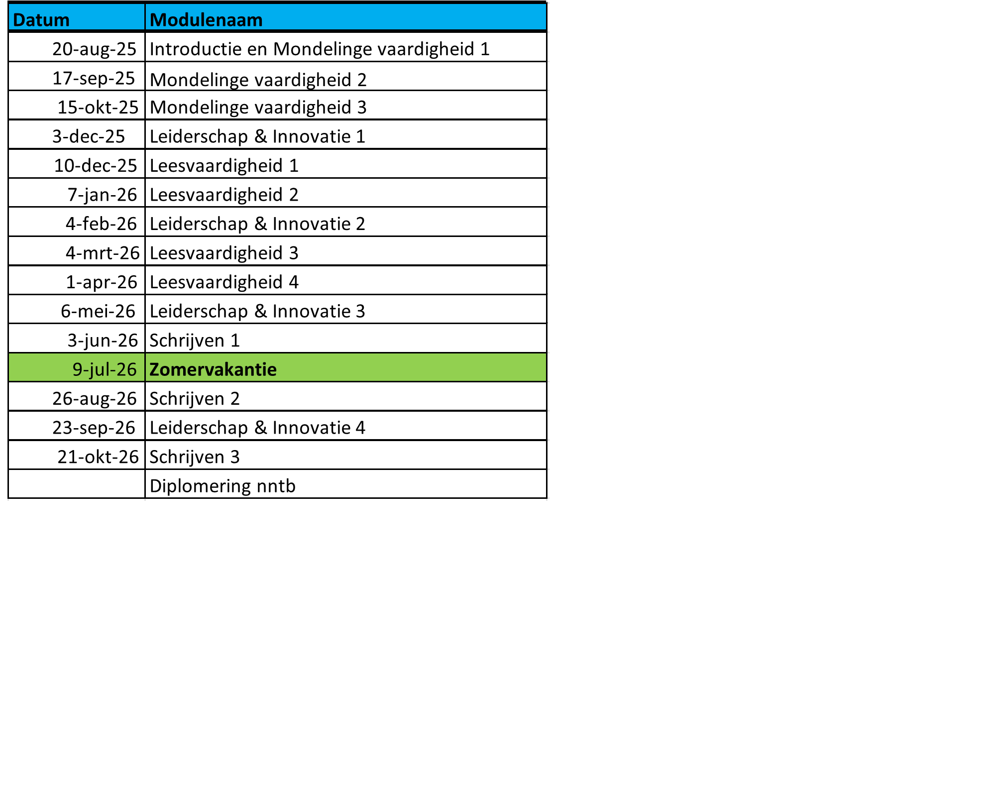 Rooster: Let op, de opleiding start in de laatste week van de zomervakantie 20 augustus 2025!